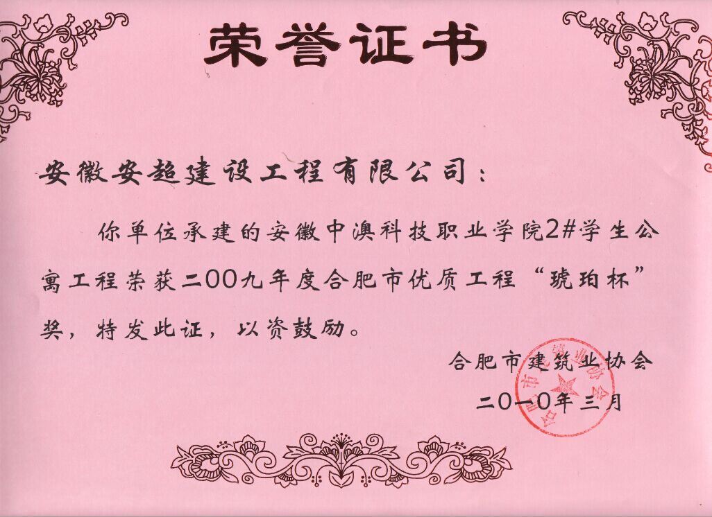 2009年度中澳科技職業(yè)技術(shù)學(xué)院琥珀杯獎