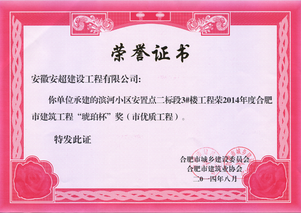 2014年度肥西濱河安置點琥珀杯獎