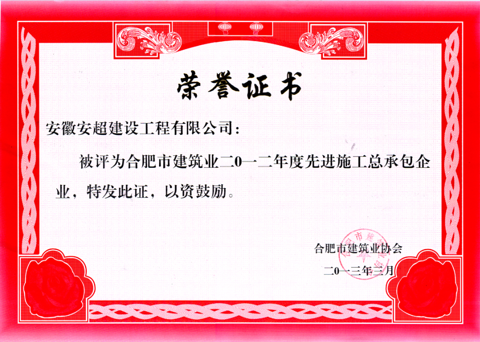 2012年度市級(jí)優(yōu)秀先進(jìn)施工企業(yè)