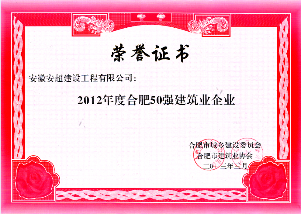2012年度市級(jí)50強(qiáng)建筑業(yè)企業(yè)