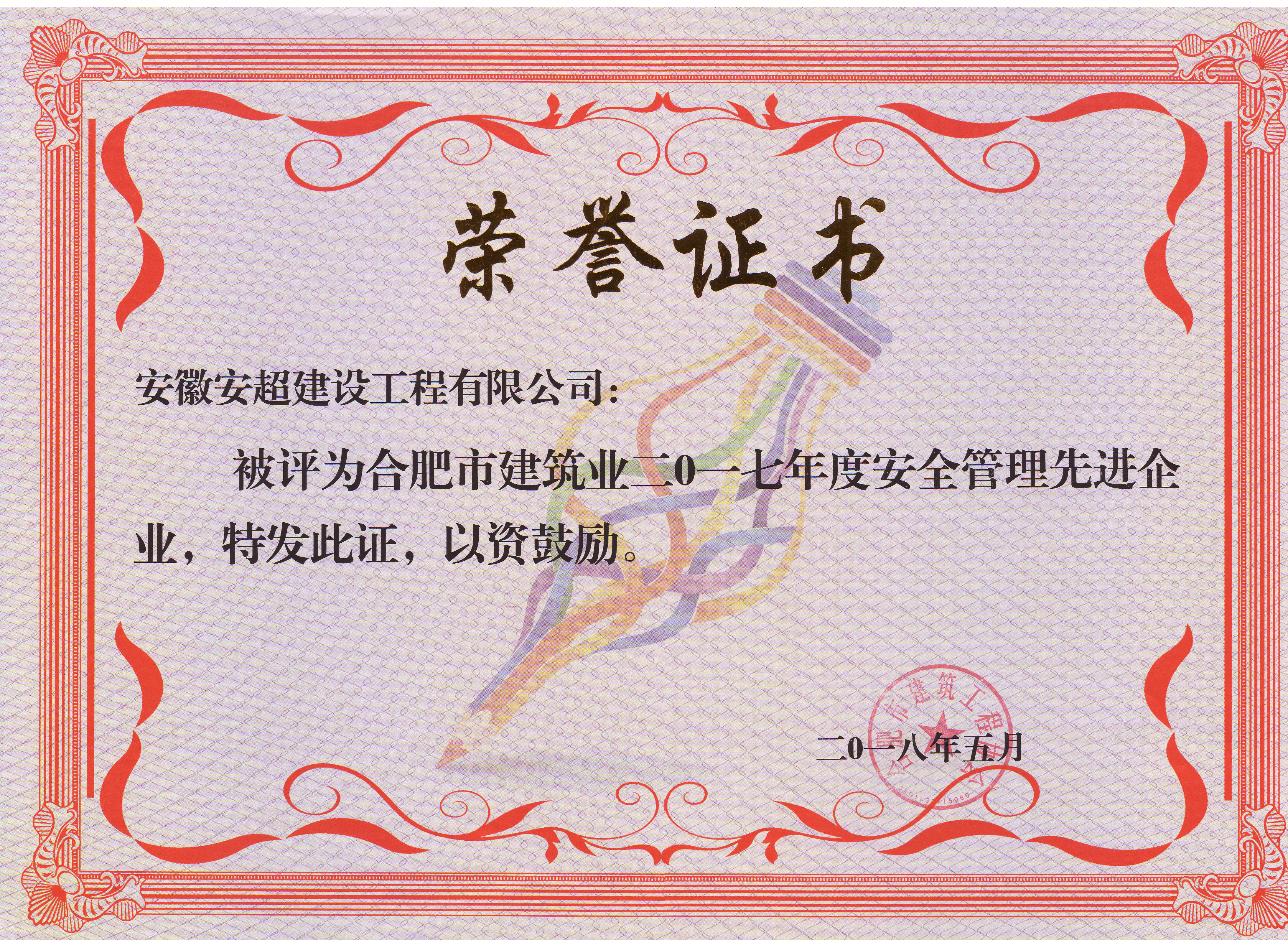 合肥市建筑業(yè)2017年度安全管理先進(jìn)企業(yè)